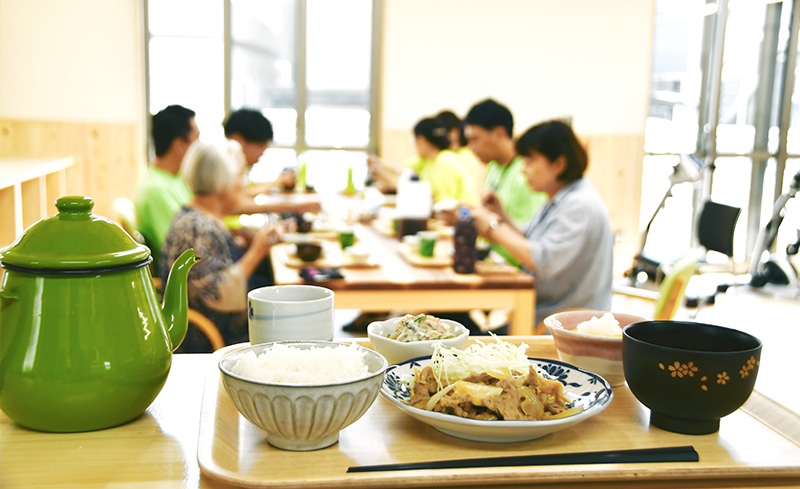 デイサービスよつばでは、毎日のお食事を大切に考えています。ただ食べるだけではなく、美味しい料理を楽しく召し上がっていただけるよう施設内で調理した、出来たてのお食事を提供しています。少しでも多くの利用者様に食の楽しみを感じていただける「楽しい食事」を提供します。